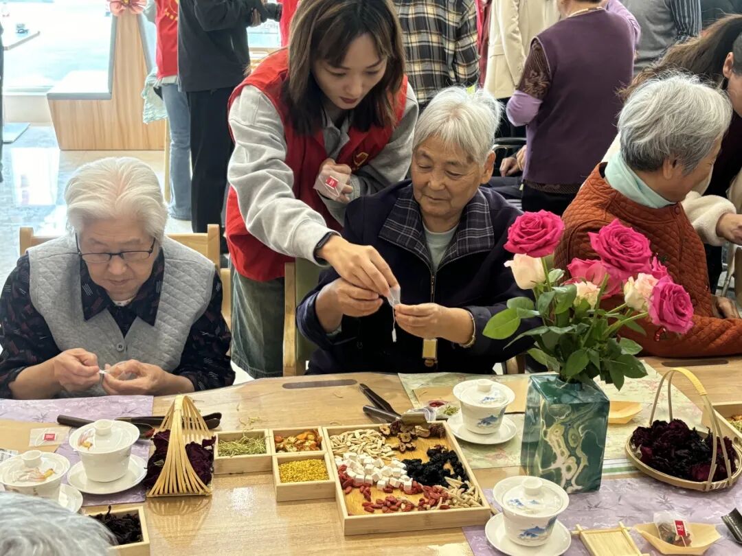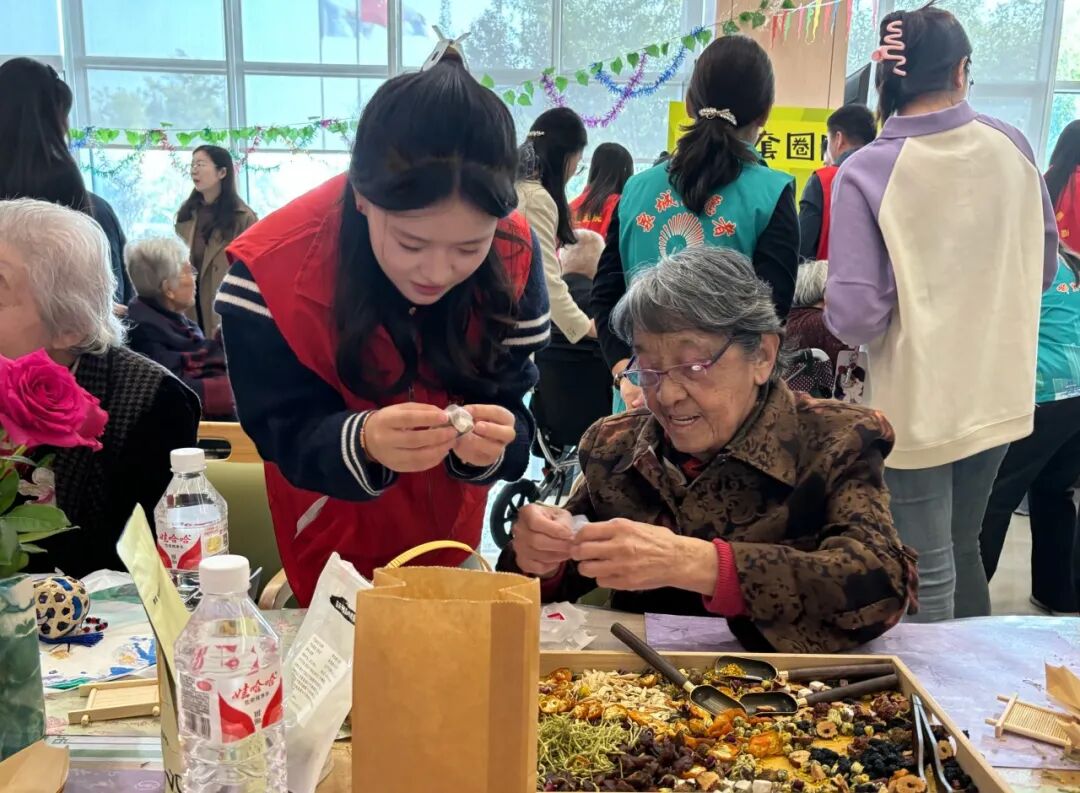 本次活动按照游园会形式组织,邀请颐养中心老人集体参与,青年干部提供志愿服务。游园会共有创意签到、非遗漆扇、糖水铺子、有奖套圈、中药香包、钓到童趣、风采摄影、普法宣传等8个项目。